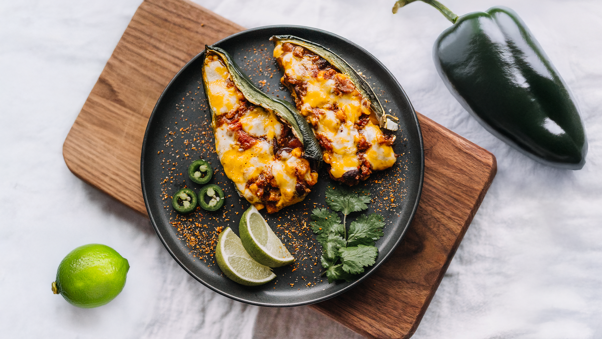 These Zesty Southwest Poblano Boats are a tasty twist on traditional stuffed peppers. Roasted poblano peppers are filled with a savory mix of seasoned ground meat (or beans for a veggie version), corn, black beans, and a blend of southwestern spices. Topped with cheese and baked to perfection, these boats offer a delicious balance of smoky, spicy, and cheesy flavors. Great as a main dish or served as a crowd-pleasing appetizer.