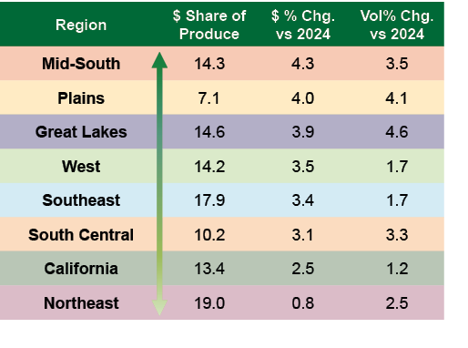The Mid-South continues its strong start with the Plains and Great Lakes close behind.